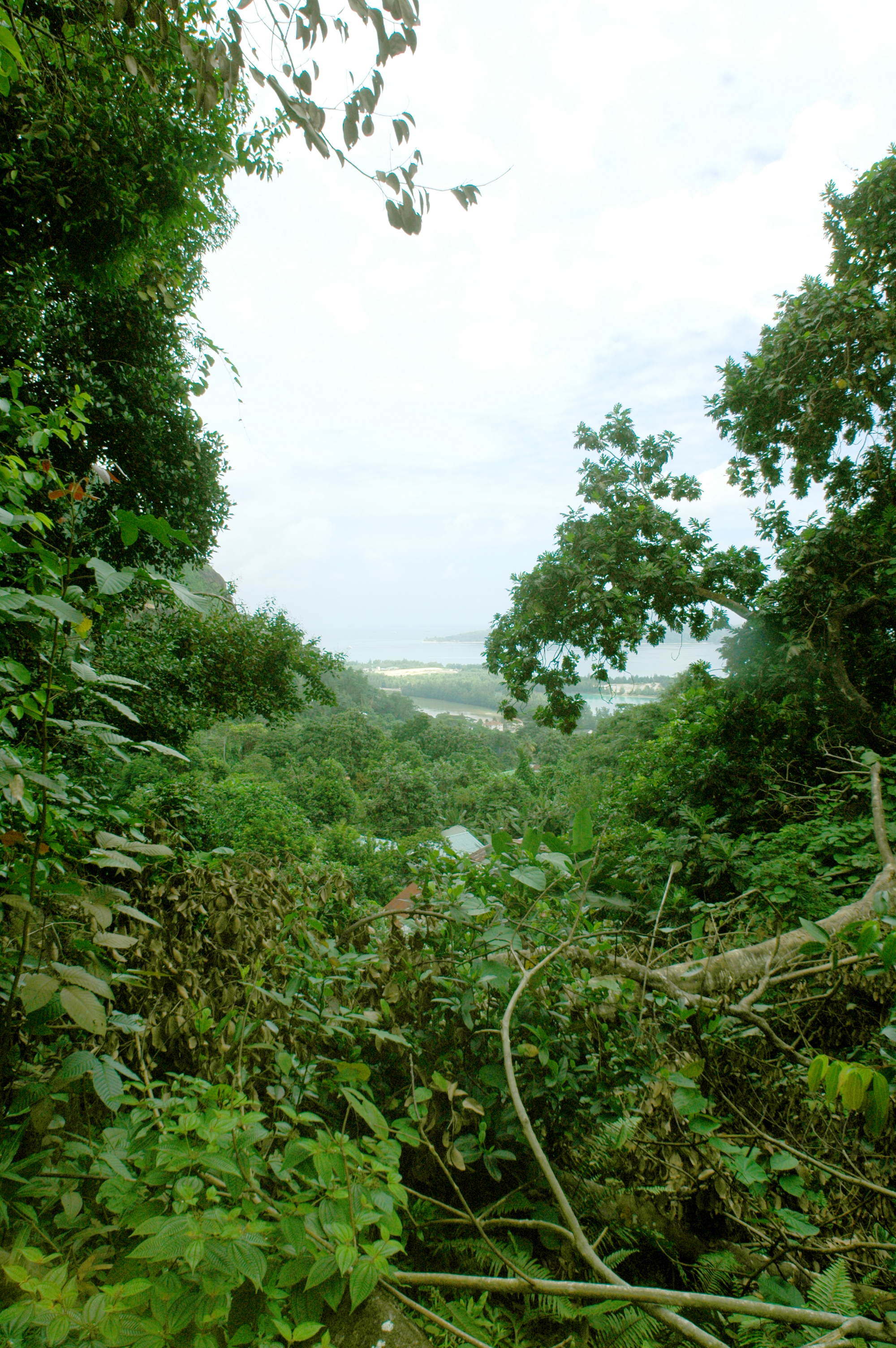 Er zeigte uns einen Trampelpfad an einer Wasserleitung entlang. Und wir, natürlich frohen Mutes gleich einen Wassefall zu Gesicht zu bekommen, sind diesen auch entlang gegangen. Immer weiter in den Urwald, immer schmaler wurde der Pfad und immer steiler der Berg.