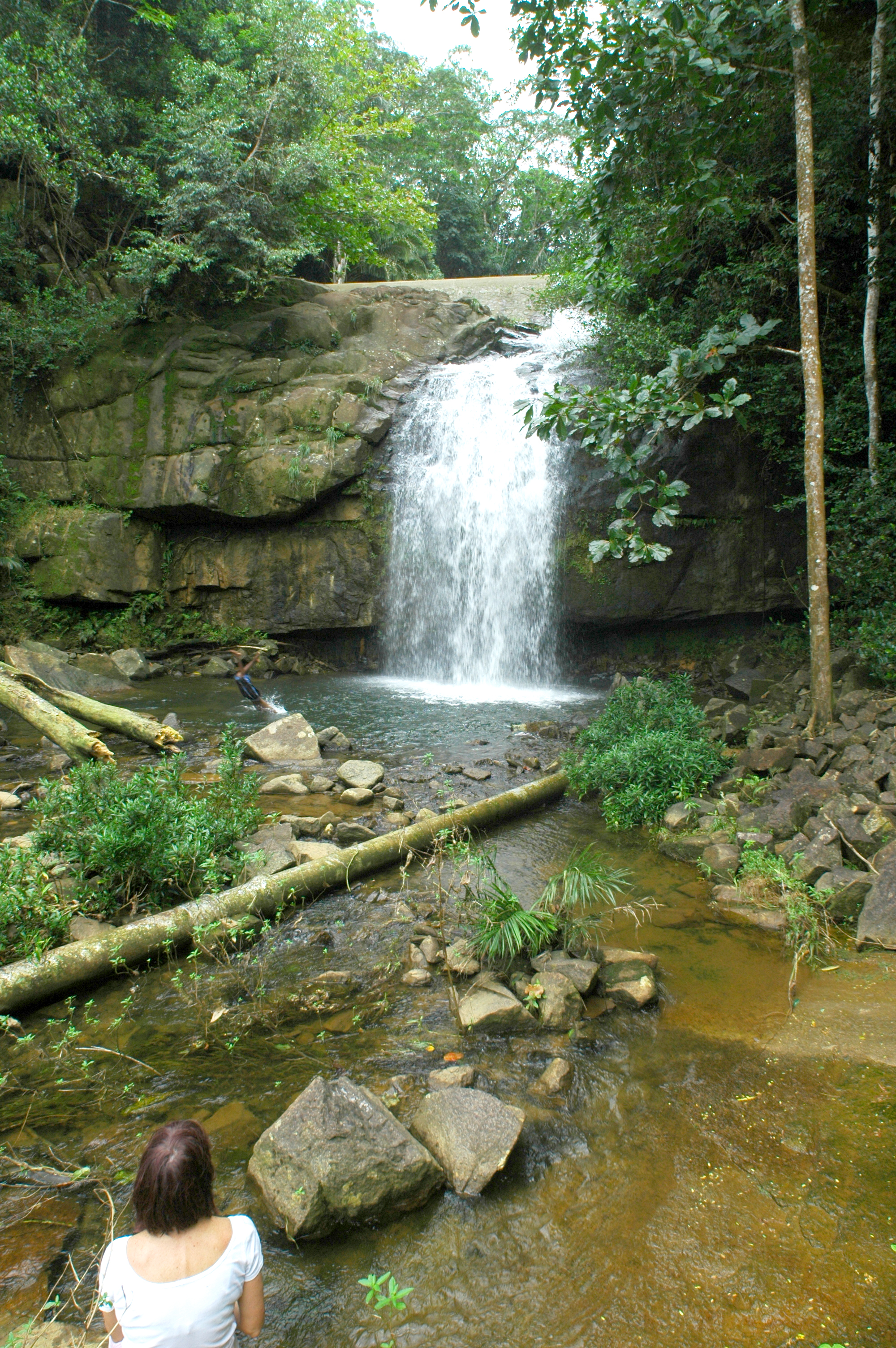 Wir hörten den Wasserfall und fragten einen Seychellois nach dem Weg zum Waterfall.