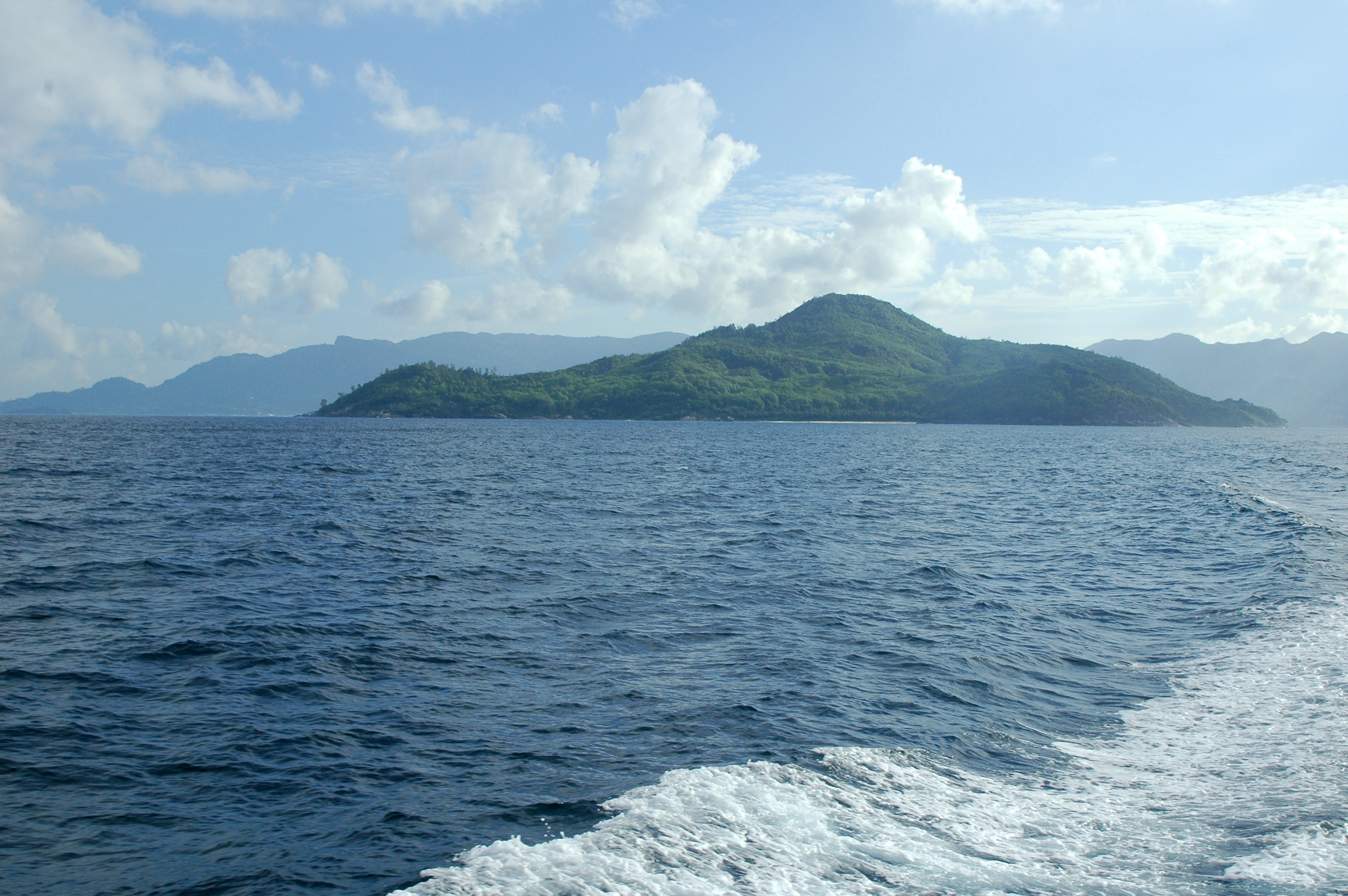 Die Fähre, der Cat-Cocos, eine Art Katamaran fährte ungefähr eine Stunde von Mahé nach Praslin. Im Fahrgastraum, ist es kalt wie im Kühlschrank, daher stehen wir draußen und lassen uns vom Salzwasser bespritzen.